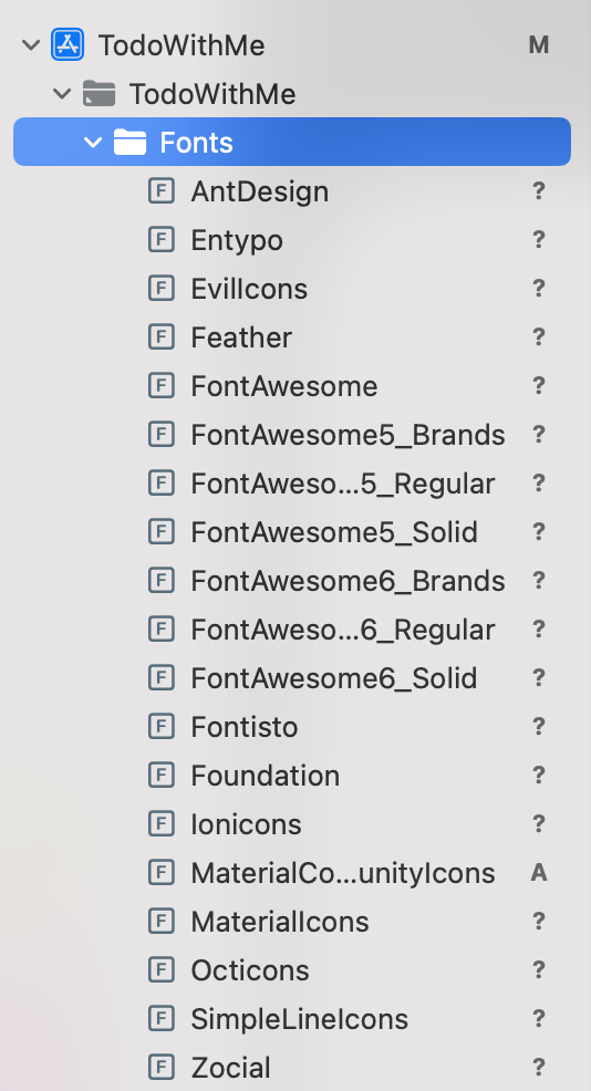 ./TodoWithMe/TodoWithMe 디렉토리에서 Fonts 폴더를 만들어 nodemodule/react-native-vector-icons/Fonts 에 있는 파일들을 모두 복사하여 넣는다.