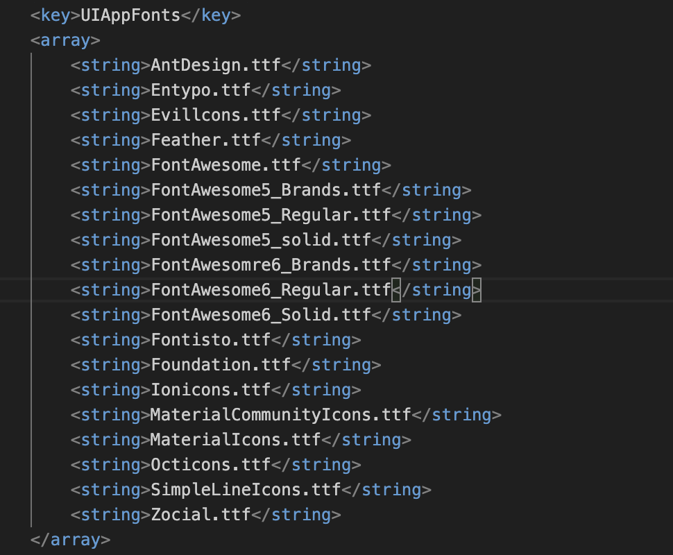 만약 react-native.config.js 없이 수동으로 폰트를 추가했을 경우 해당 설정은 필수이다.